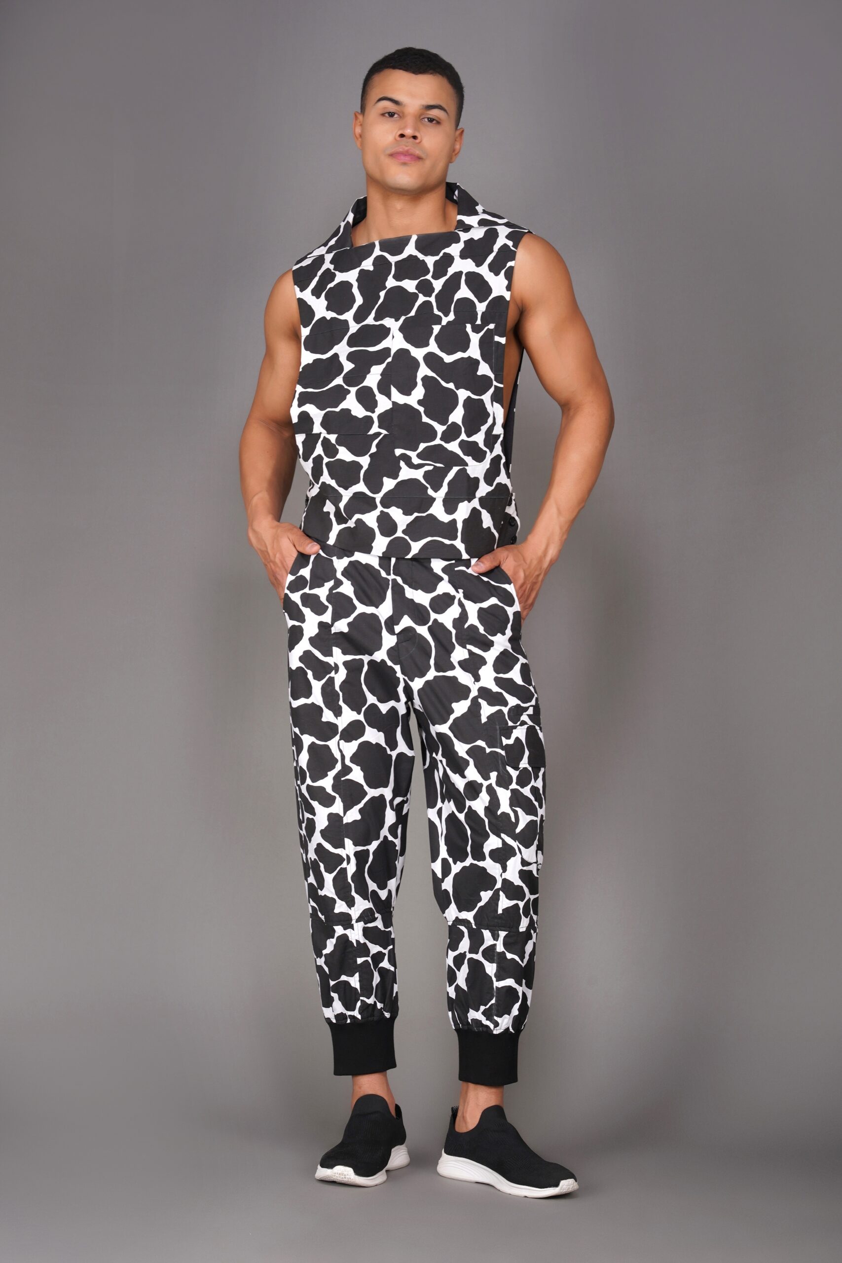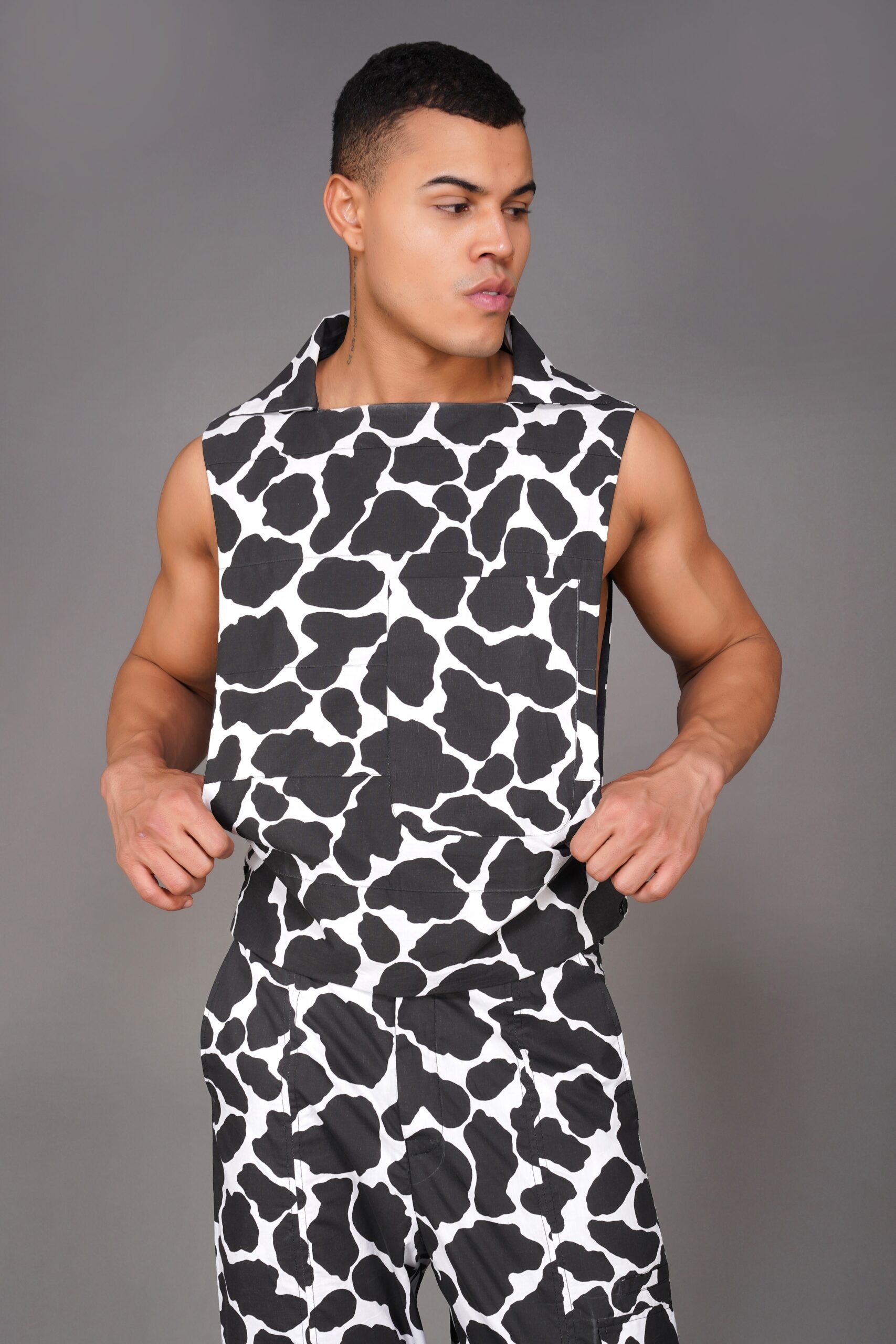 / Flap Collar Cow Print Vest Shirt